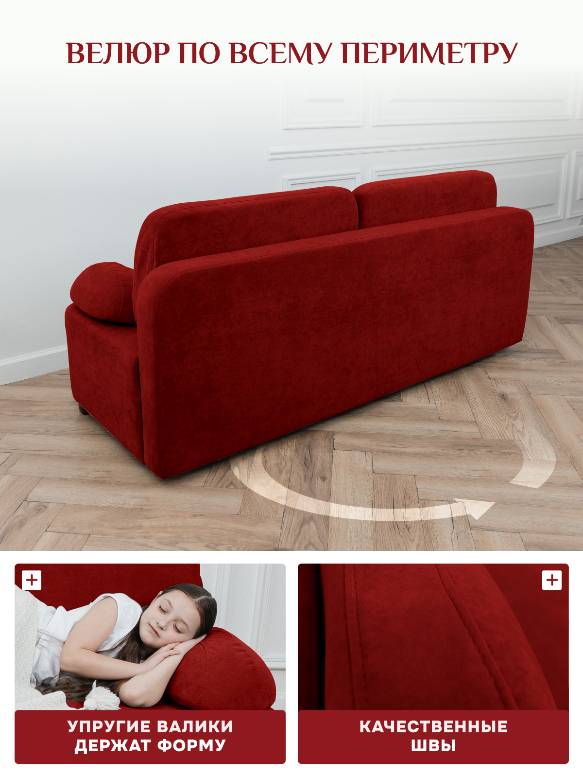 Используемая ткань - износостойкий мебельный велюр. Благодаря, бархатистому велюру диван дарит комфорт всему телу. А износостойкость ткани и лёгкий уход за ней позволяет использовать мебель без дополнительных чехлов. Одно движение руки и пролитый сок или кофе уже не оставят следа на мягкой мебели.
