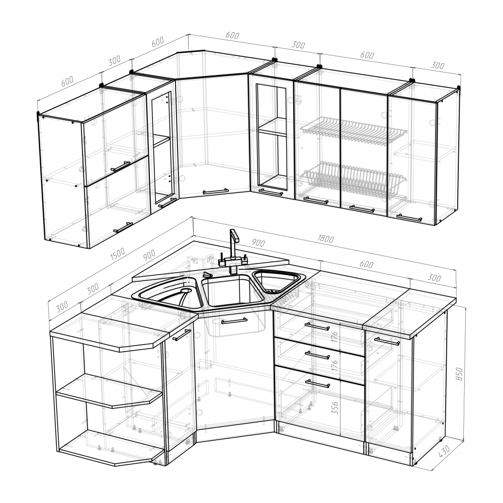 ***Мойки, смесители и посудосушители в комплекты гарнитуров не входят.