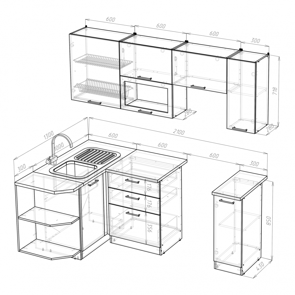 Артикул: A63653Кухонный гарнитур Ольга оптима 1 1300х2500 мм (Герда)