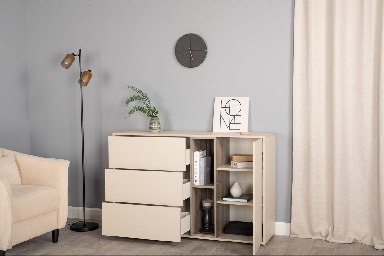 Благодаря нейтральному светлому оттенку и универсальности декора модули можно разместить в спальне, гостиной, прихожей.