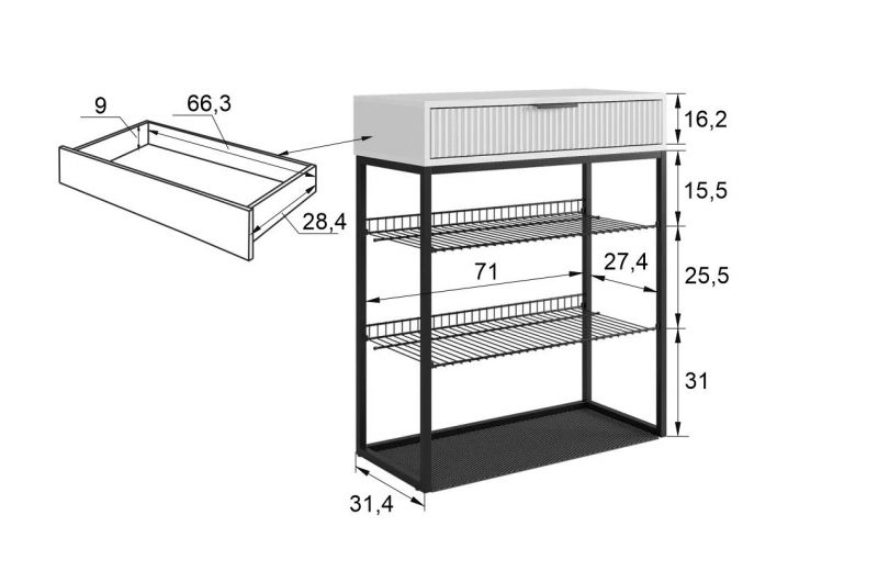 Артикул: A63302Обувница Вельвет (белое дерево/белый матовый/черный муар) (Мебельсон)