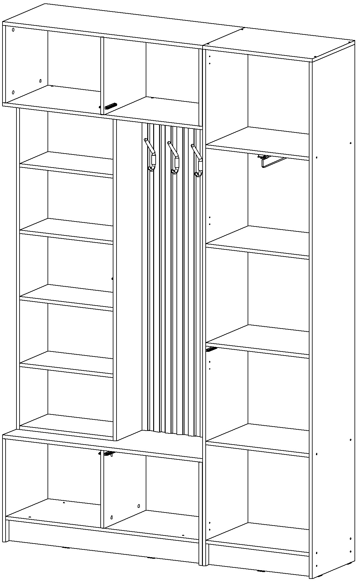 Габариты: 1550 (ширина) х 414 (глубина) х 2364 (высота) мм.