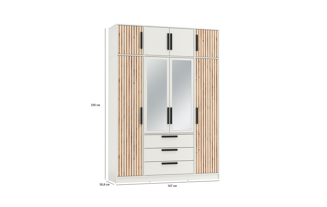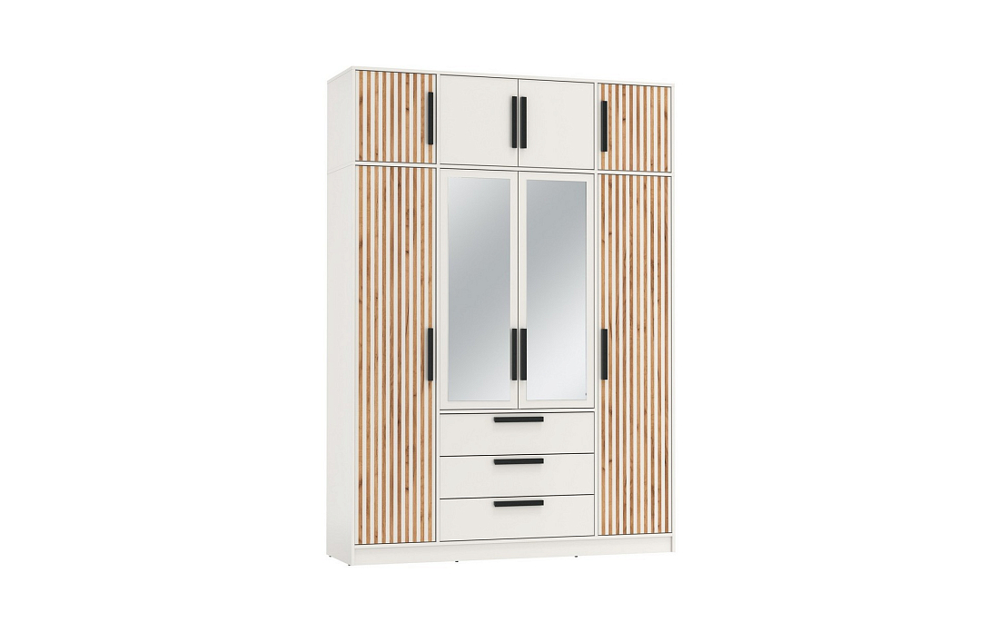 Шкаф для одежды 83.07 Вегас (4-х дв.) с зеркалом (белый) исполняется в классическом стиле и спокойных цветах. Модель сочетает в себе простоту и функциональность, но при этом не выглядит громоздко. Она гармонично впишется в пространство, не утяжеляя его.