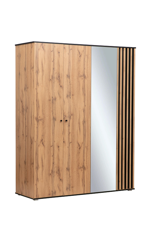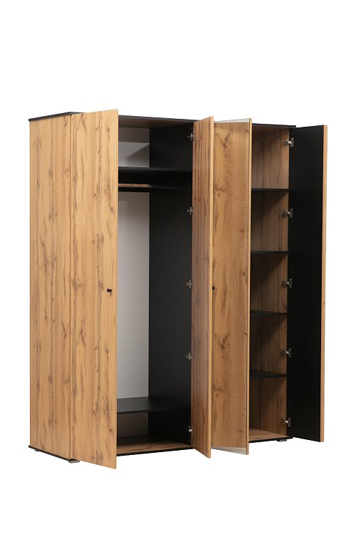 Шкаф для одежды 51.15 Либерти (опора h=20мм) (дуб вотан / черный / профиль: Masa Decor дуб вотан) совмещает благородную привлекательную эстетику с практичностью и хорошим функционалом. Продуманный дизайн уместно дополнит созданный интерьер и органично впишется в любое помещение.
