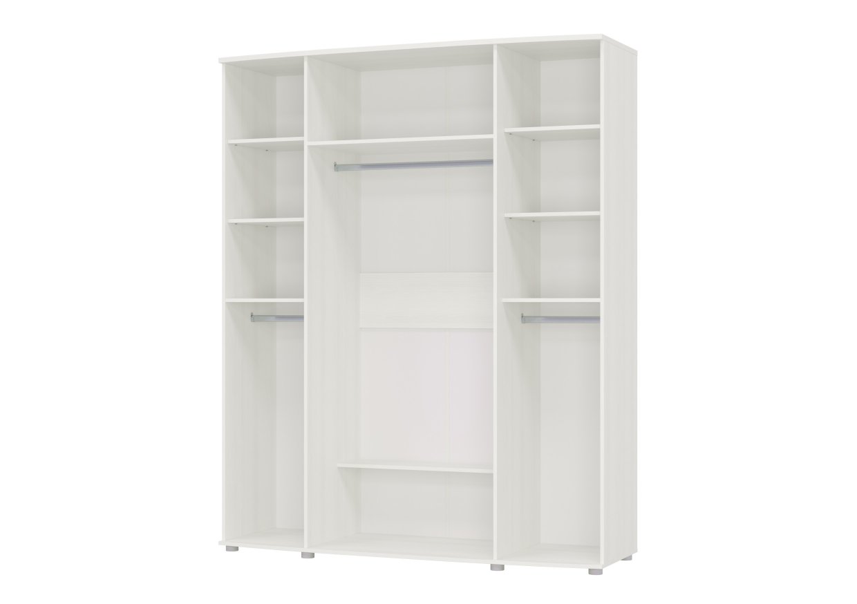 В этом шкафу три отдела со штангами: стандартное и два отдела метровой высоты — для хранения блузок и рубашек, брюк и юбок, которые отлично разместятся в этом большом шкафу. Четыре распашных двери обеспечат легкий доступ к вещам.