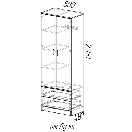 Шкаф 800 мм Дуэт полки/штанга (Эра)
