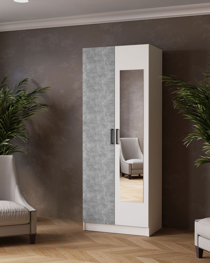 Артикул: A63778Шкаф 2000 мм Ларс с зеркалом Белый/Ателье светлое (Микон)