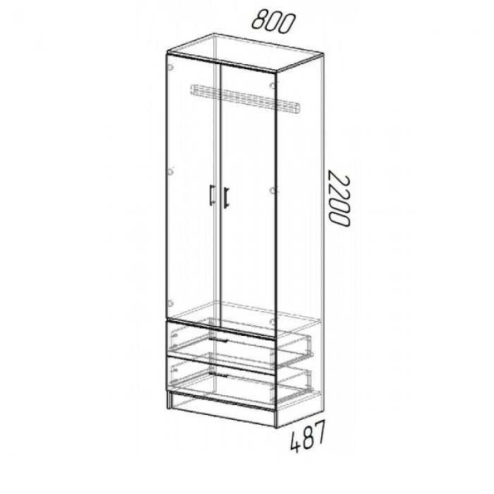 Шкаф 800 мм платяной Дуэт с ящиками венге/лоредо (Эра)