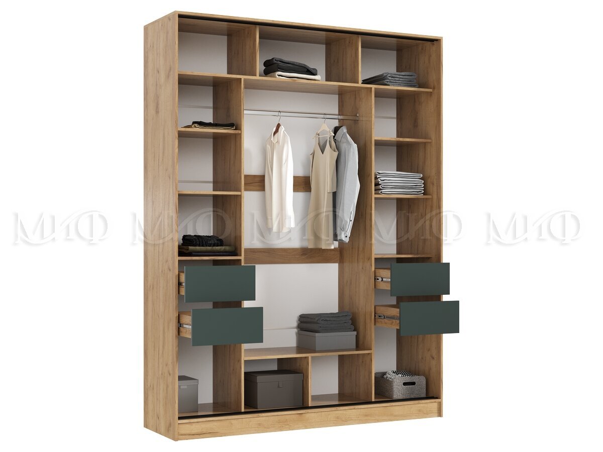 Артикул: A64546Шкаф 1500 мм 3-х створчатый Роджина крафт/изумруд (Миф)