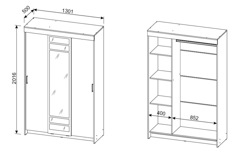 Шкаф-купе ШКП-7 1300 мм золотой/белый (СВ)