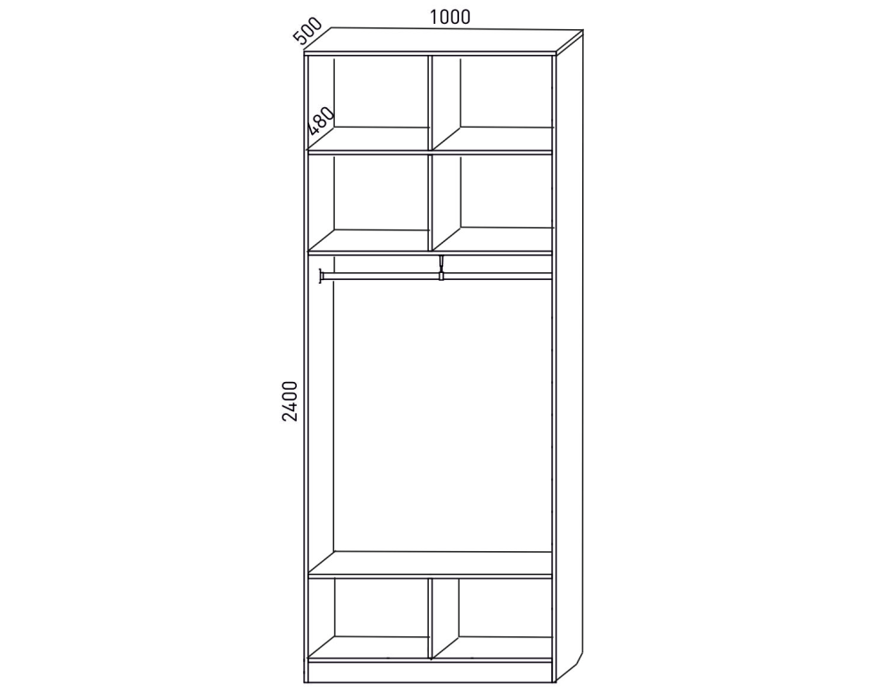Ширина 1000 х Глубина 500 х Высота 2400