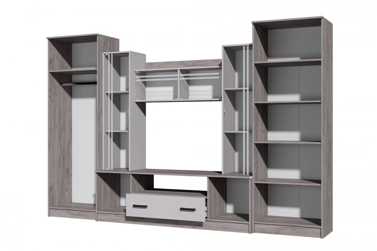 Стенка Николь-2 белый/бетонный камень(Зарон)