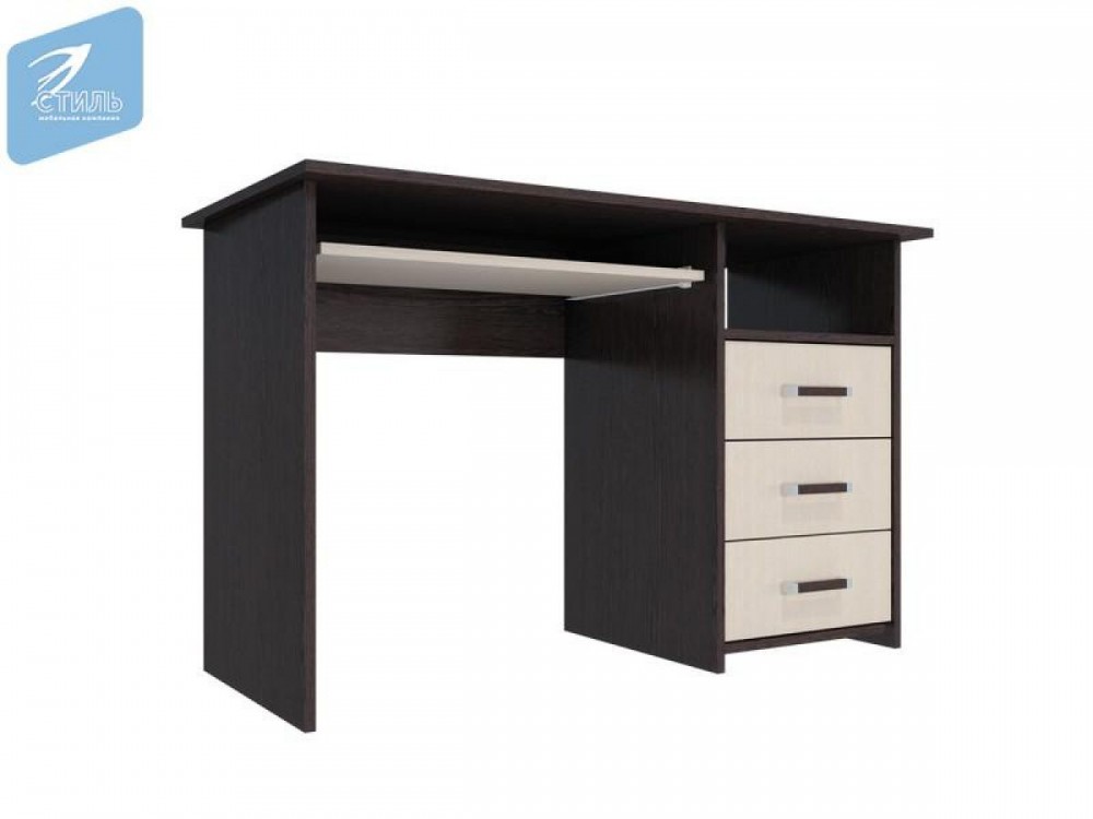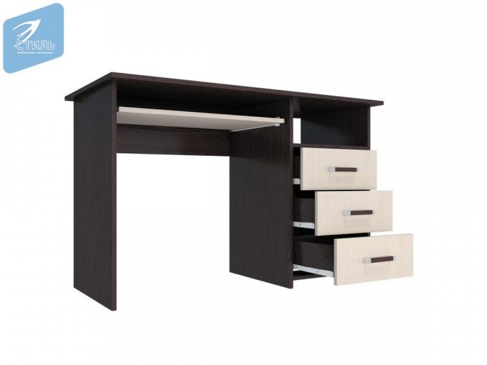 Стол имеет выкатную панель для клавиатуры длиной 350 мм ивыкатные ящики на роликовых направляющих длиной 400 мм.