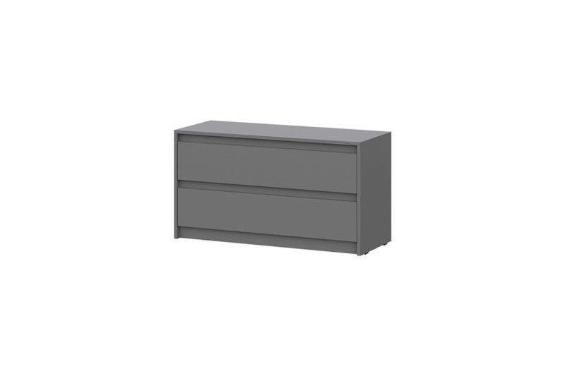 Лицевая фурнитура на тумбе отсутствует. Ящики открываются с помощью захвата рукой.