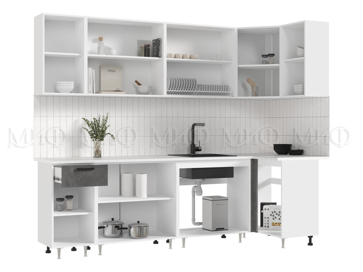 Артикул: A62095Угловой кухонный гарнитур Рио New ЛДСП 2600*1000 мм крафт белый (Миф)