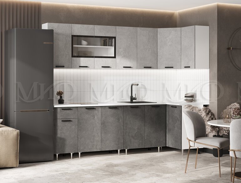Артикул: A61585Кухонный гарнитур Рио 2400 мм (Бетон светлый/Бетон темный) (Миф)